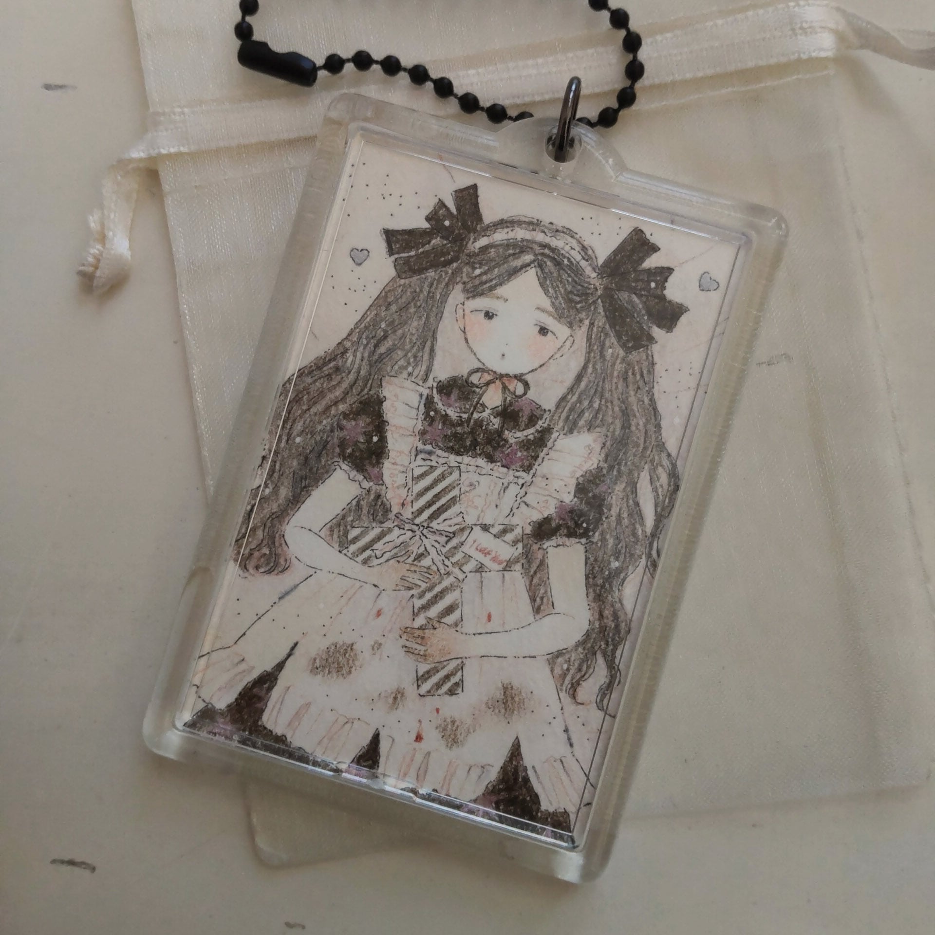 原画を挟み込んだキーホルダーです。